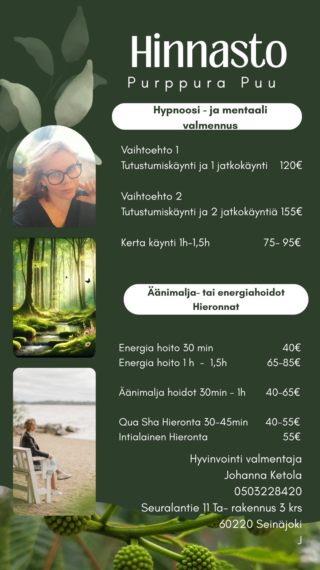 Palvelukategoriasta palvelu ja sen jälkeen voit varata sinulle sopivan ajan kalenterista. Jos et löydä mieleistäsi aikaa voit olla yhteydessä minuun viestillä tai soitolla, niin löydetään sinulle sopiva aika.